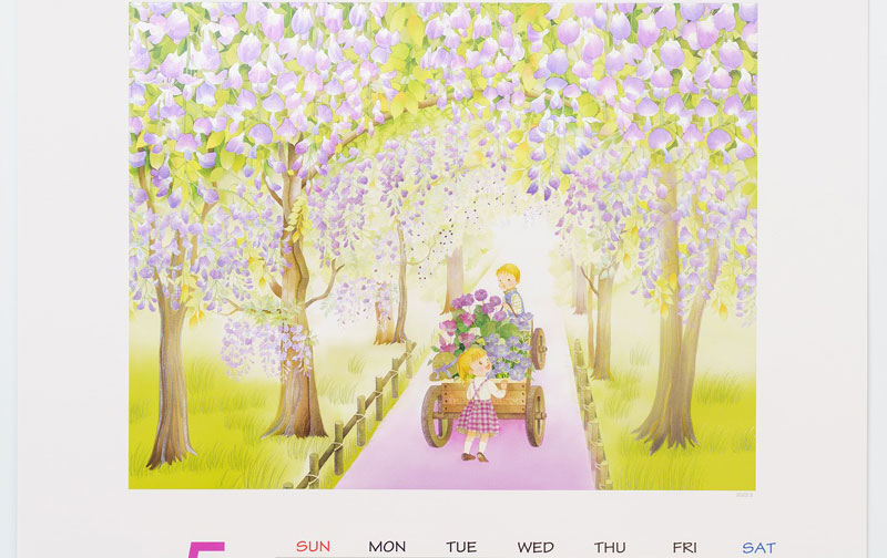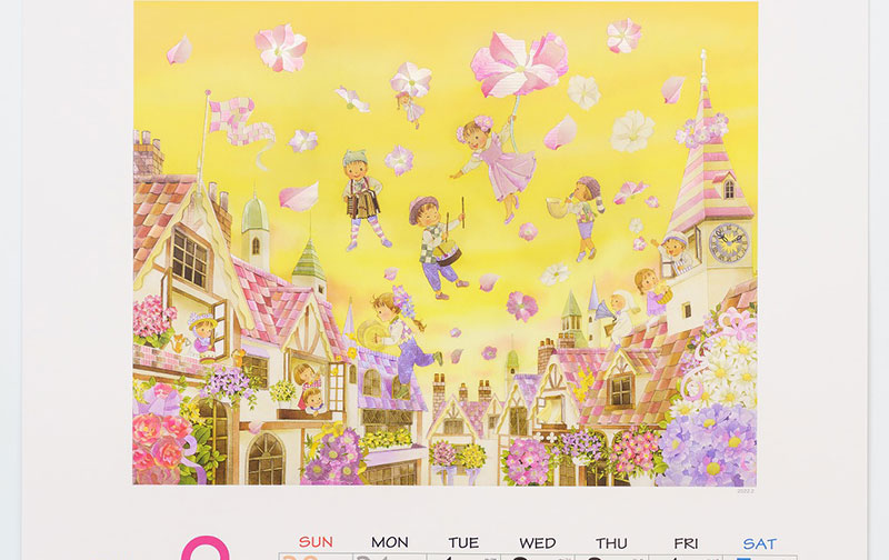 - メルヘンの世界では、柔らかく温かな画風で子供や植物を描き、企業カレンダーや書籍のイラストなどを手がける