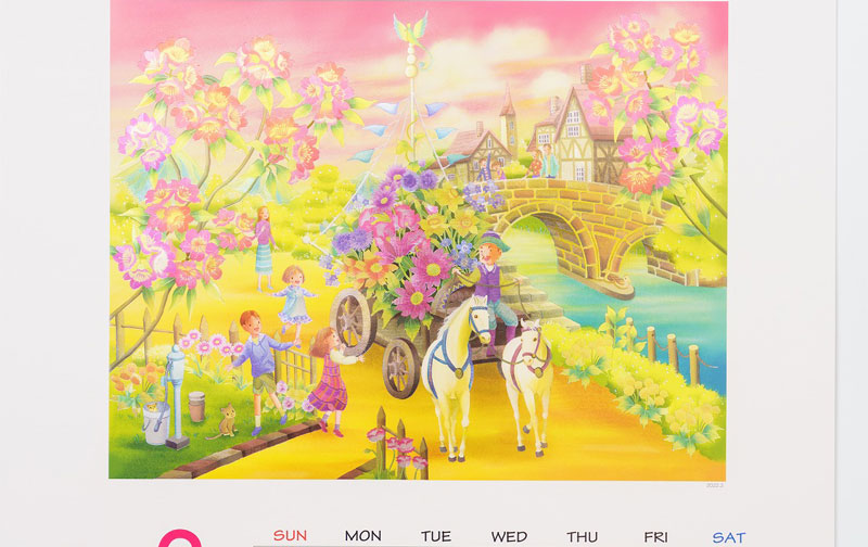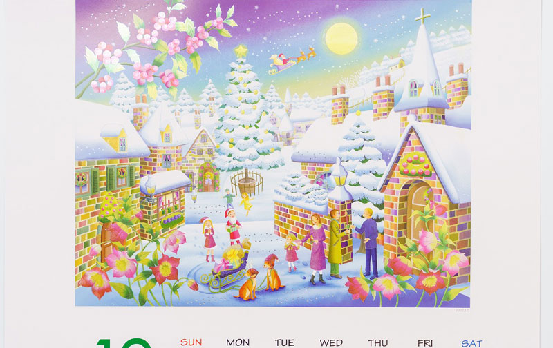 毎年厳選した画家に描いてもらっており、企業・事業所向け名入れ印刷だけではなく、カスタマーの皆様からも「購入したい」とお話しが来る、人気商品でございます。